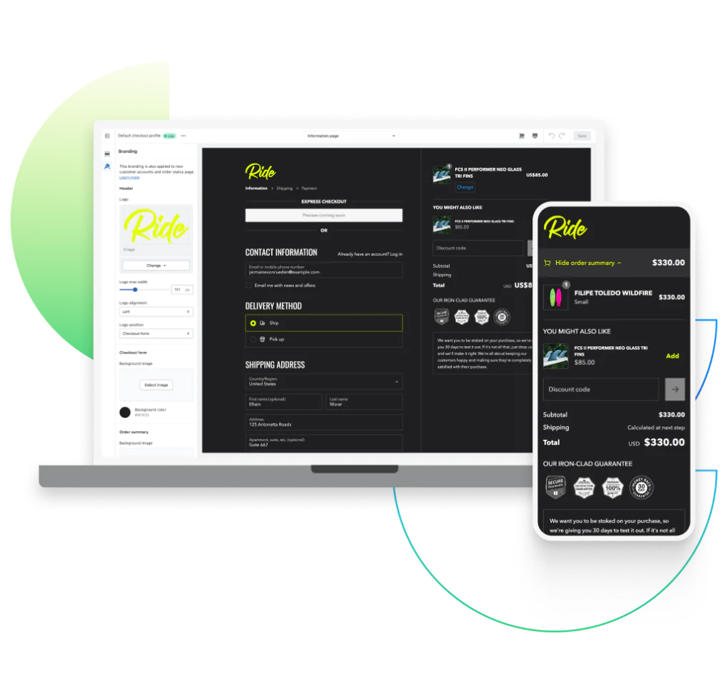 - Add your brand’s logo, change the background color or image, and update the font of your checkout.